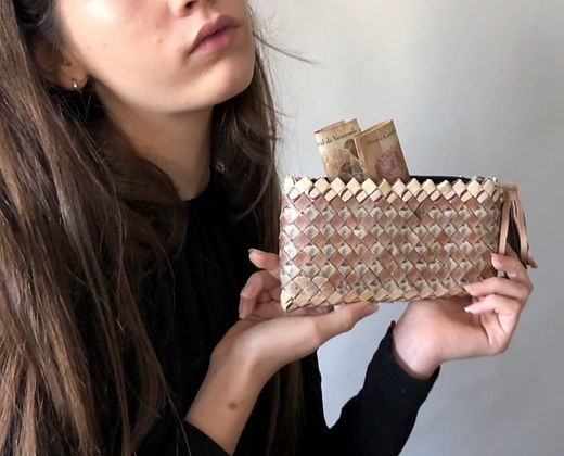 Das Portmonnaie „Venezuela 100“ entsteht aus venezolanischen Banknoten, die von Kunsthandwerkerinnen und Kunsthandwerkern sorgfältig zu einer stabilen Oberfläche verflochten werden. Durch diese besondere Technik erhalten die Banknoten eine neue Funktion und werden zu einem außergewöhnlichen Accessoire.