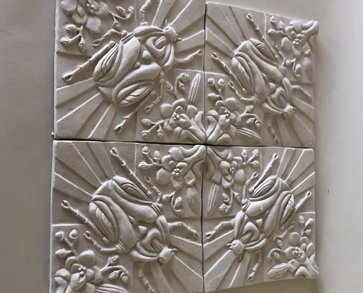 Die Zementfliese „Käfer“ ist ein dekoratives Wandobjekt mit plastischem Reliefmotiv. Die detailreiche Darstellung zweier Vögel verleiht der Fliese eine lebendige Struktur und macht sie zu einem besonderen Interior-Element für moderne und klassische Räume.