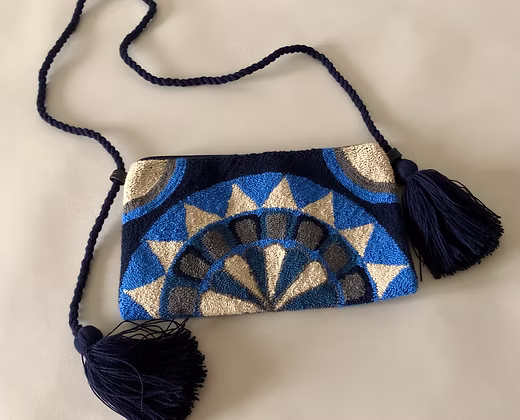 Die Schultertasche Karibik verbindet traditionelles Kunsthandwerk mit einer ausdrucksstarken, farbenfrohen Gestaltung. Jede Tasche wird von Handwerkerfamilien in Kolumbien in sorgfältiger Handarbeit gefertigt und zeichnet sich durch ihre charakteristischen Muster und hochwertigen Materialien aus.