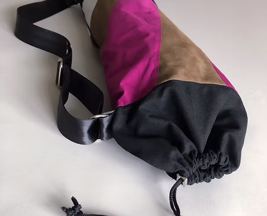 Die Tasche bietet ausreichend Platz für eine Yogamatte und lässt sich dank ihres variablen Verschlusses in der Länge anpassen, sodass sie bequem getragen werden kann.