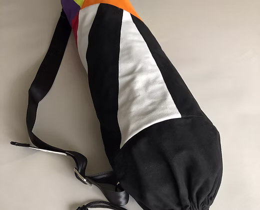 Diese Yogatasche verbindet Funktionalität mit einer modernen, grafischen Gestaltung. Sie wurde aus farbenfrohem Alcantra hergestellt. Das hochwertige Material zeichnet sich durch Weichheit, Elastizität, Strapazierfähigkeit und Pflegeleichtigkeit aus und eignet sich ideal für den täglichen Gebrauch.