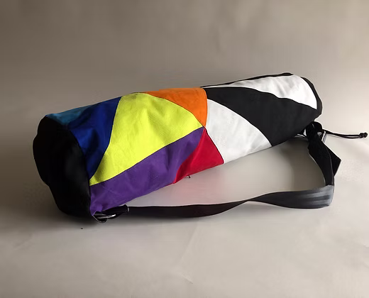 Durch die geometrische Farbgestaltung entsteht ein modernes Design, das die Yogatasche nicht nur zu einem praktischen Begleiter auf dem Weg zum Yoga macht, sondern auch zu einem stilvollen Accessoire im Alltag.
